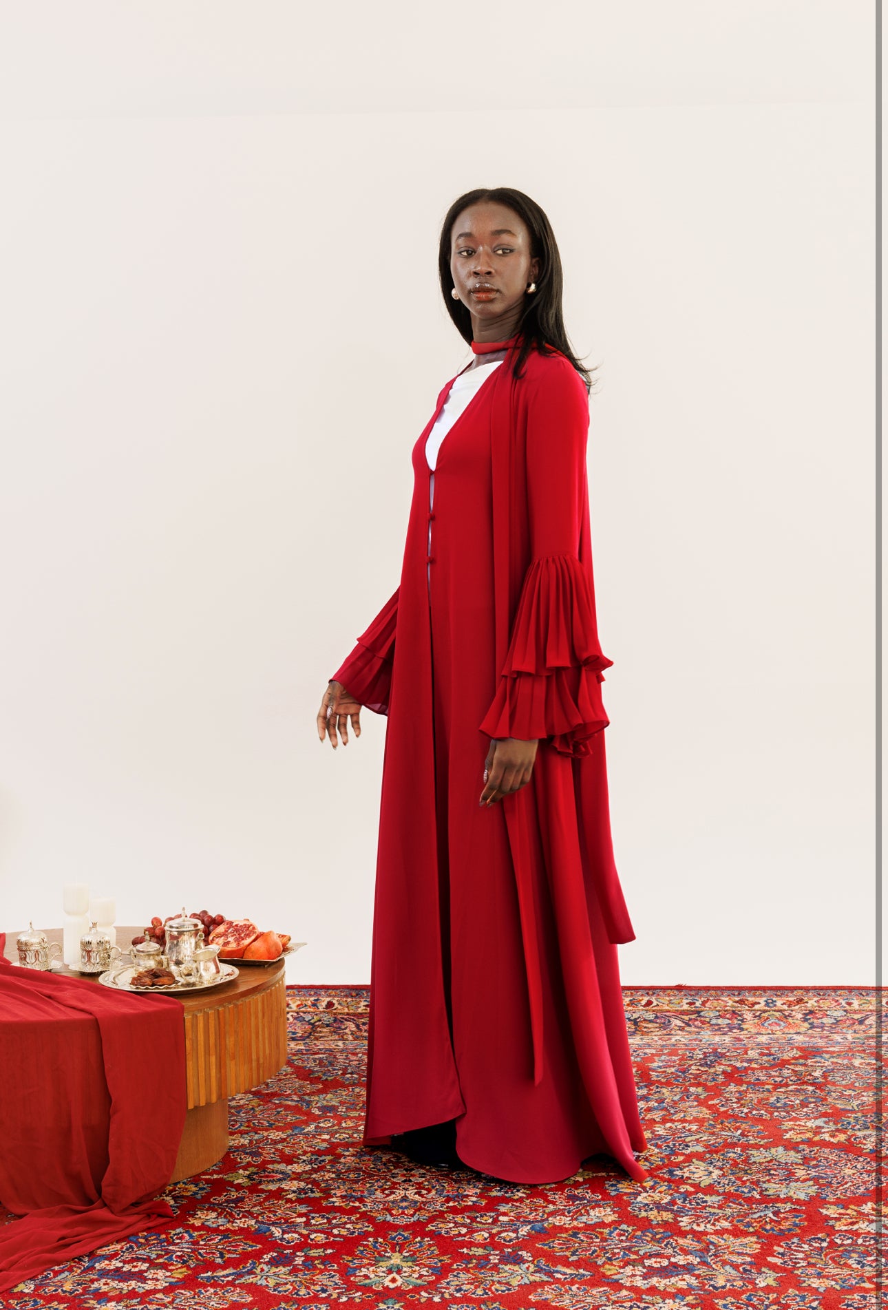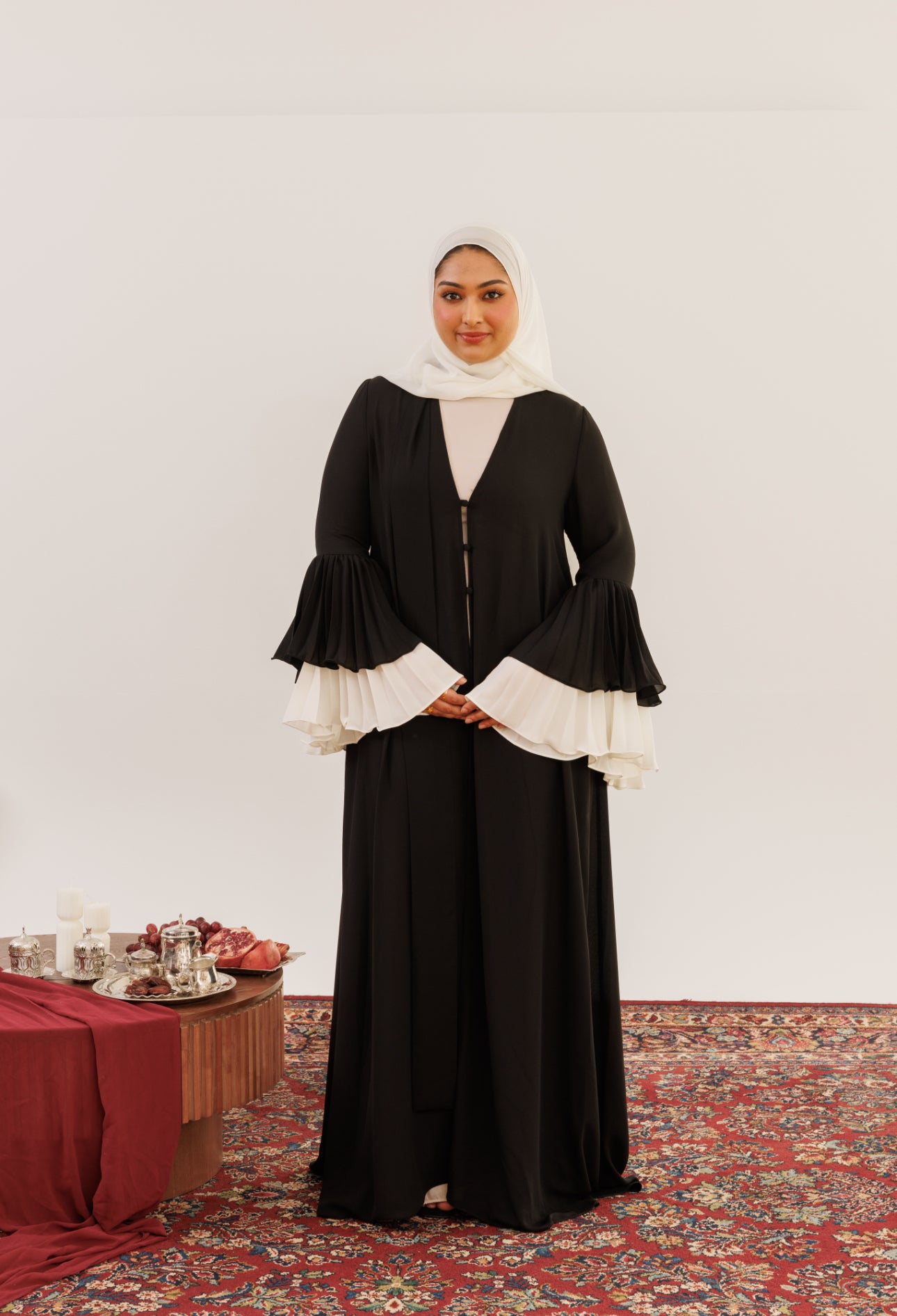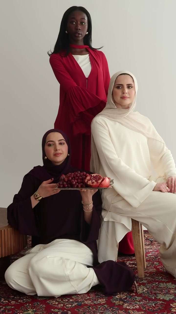 Designed to move seamlessly from intimate iftars to Eid gatherings, the collection features timeless gowns, refined sets, and statement silhouettes made to be worn, remembered, and restyled. Luxurious fabrics, graceful coverage, and a sophisticated palette define a collection rooted in craftsmanship while looking confidently forward.