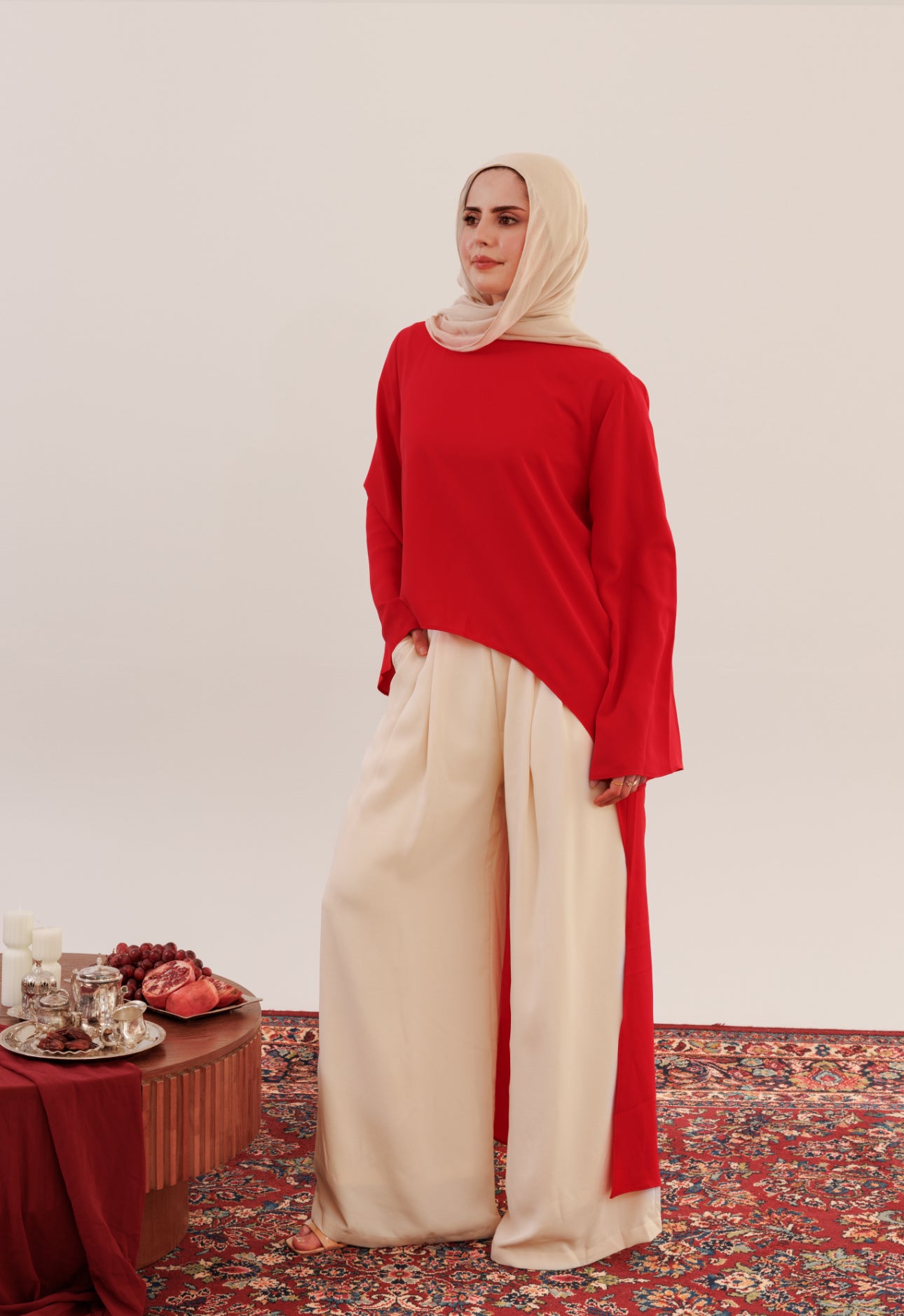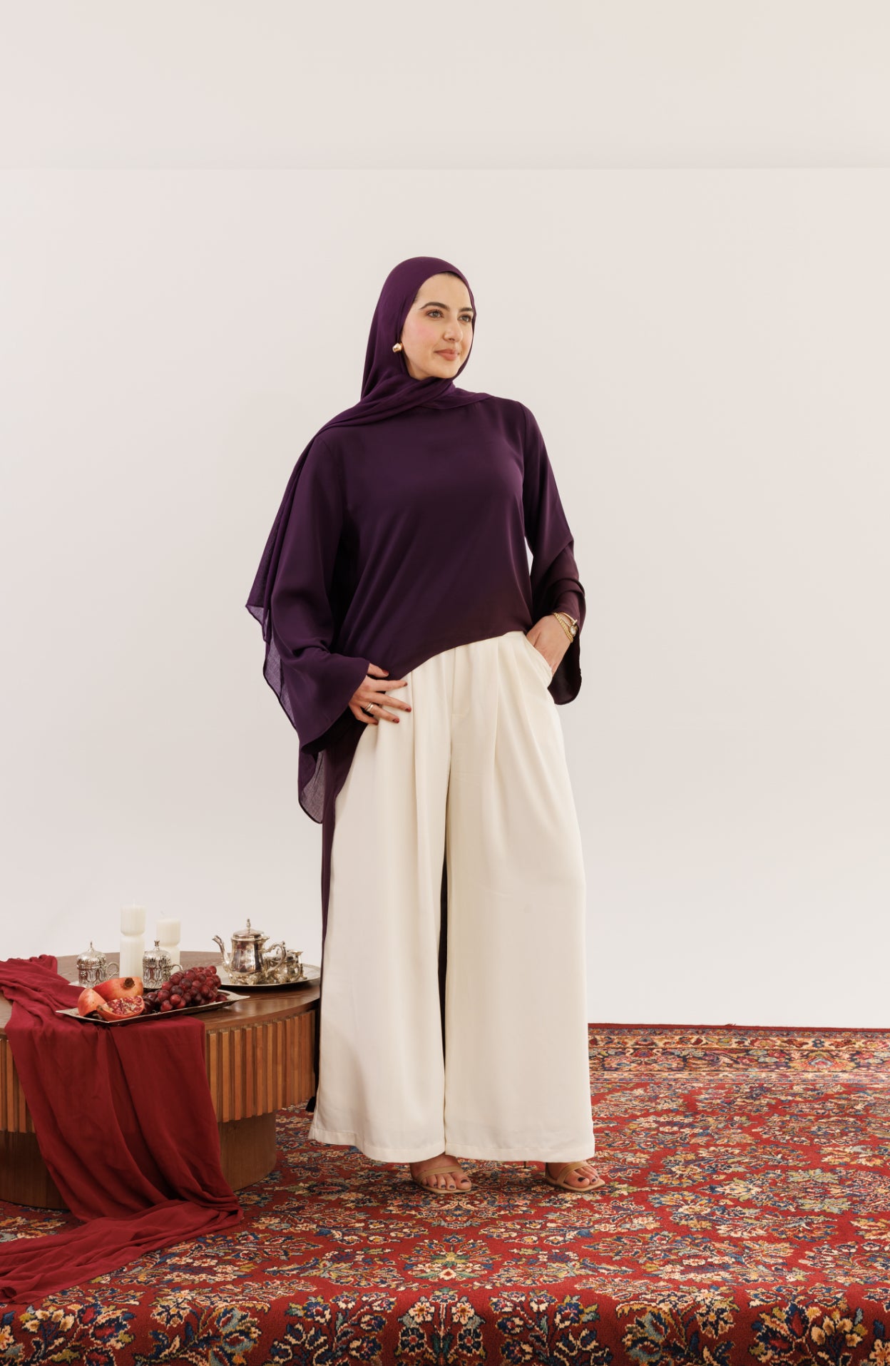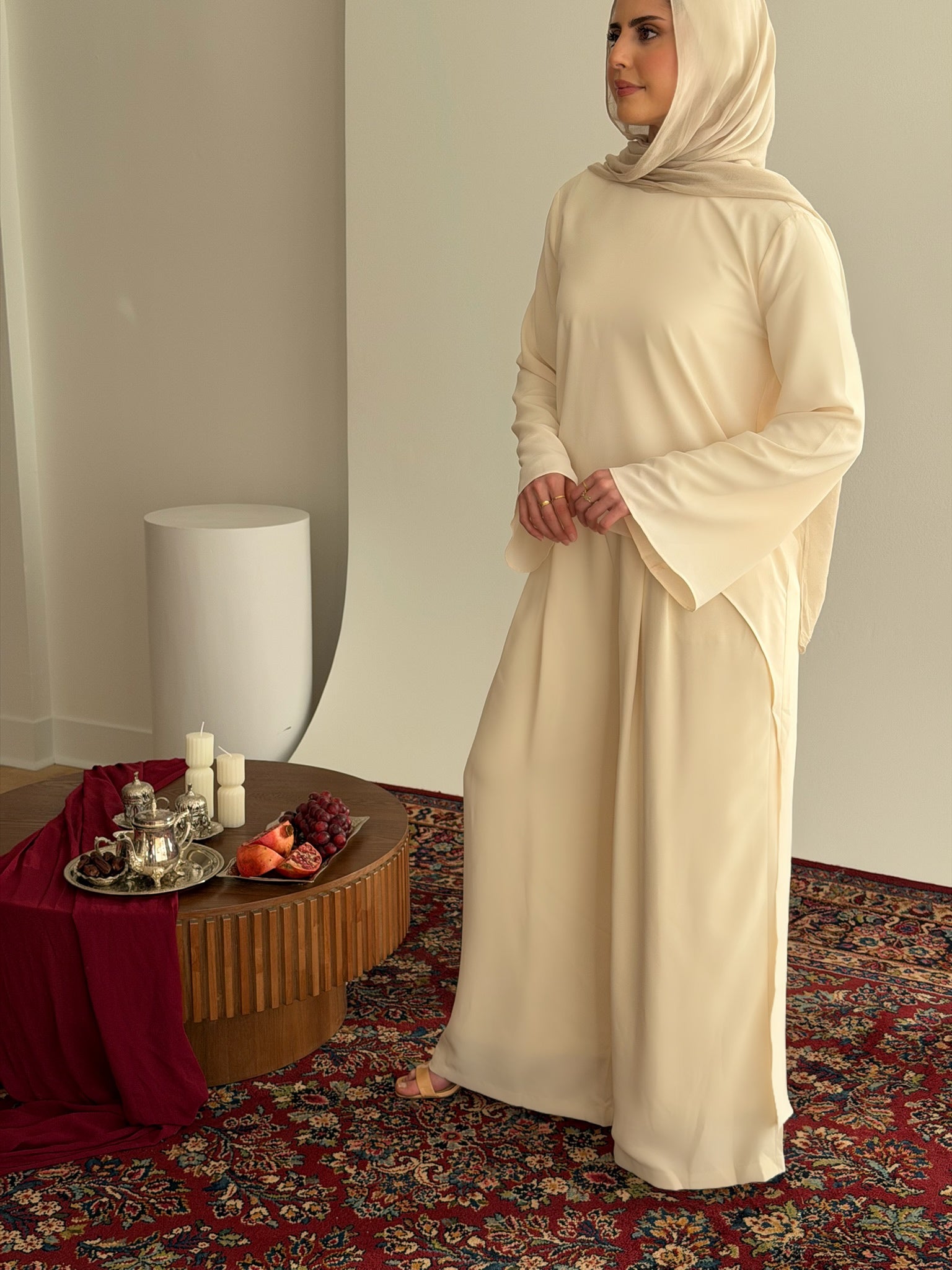 Designed to move seamlessly from intimate iftars to Eid gatherings, the collection features timeless gowns, refined sets, and statement silhouettes made to be worn, remembered, and restyled. Luxurious fabrics, graceful coverage, and a sophisticated palette define a collection rooted in craftsmanship while looking confidently forward.