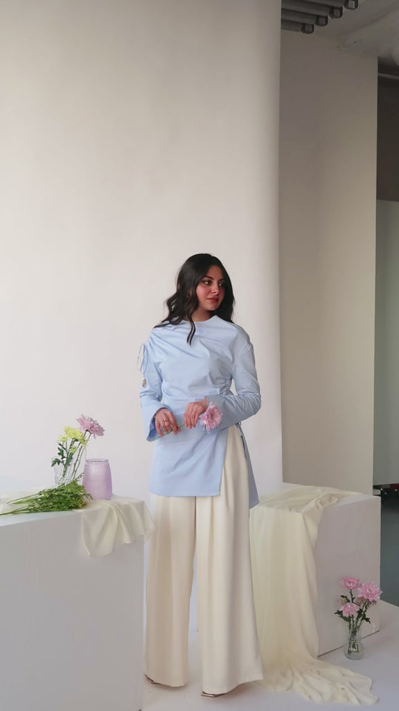 The Cotton Ruched Tunic embodies the signature SE style in its asymmetric silhouettes, custom branded hardware, intricate ruching details & side slit for movement. This tunic is crafted from soft, breathable 100% cotton, making it ideal for warm weather. The bottoms pictured here are not included— only the tunic.