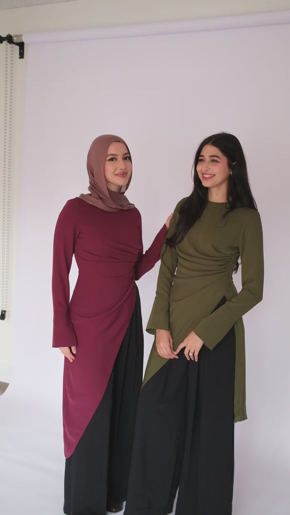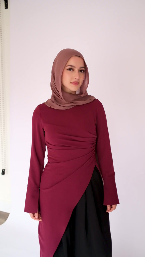 The Asymmetric Slit Tunic — our original thoughtfully sculpted design features a full length slit that adds subtle dimension and modern edge while still offering full coverage. It's elevated, effortless, and versatile, and will be one of those wardrobe pieces you constantly grab for whether styled up or down.