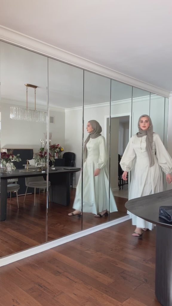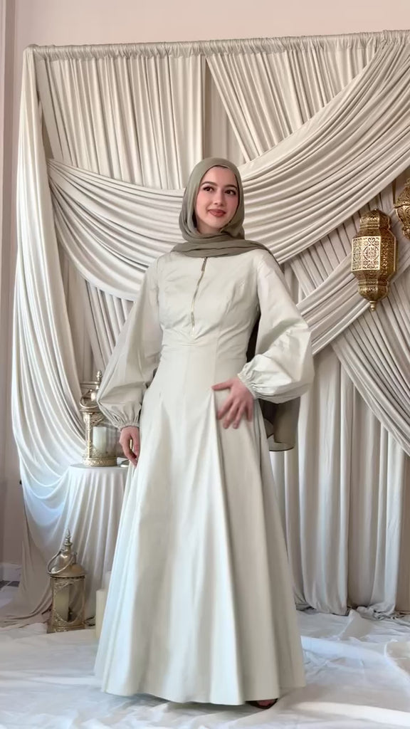 Embrace effortless elegance with the Zip Up Cotton Pleated Dress. It is the perfect feminine spring dress in its balloon sleeves, gold hardware zipper, drop waisted silhouette, elastic cuffs, and wide pleated skirt.