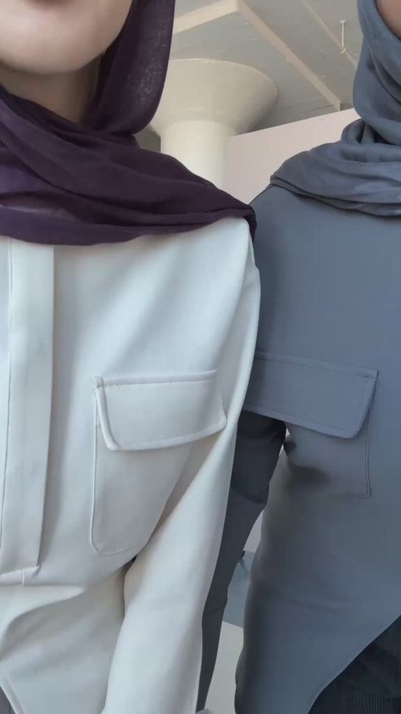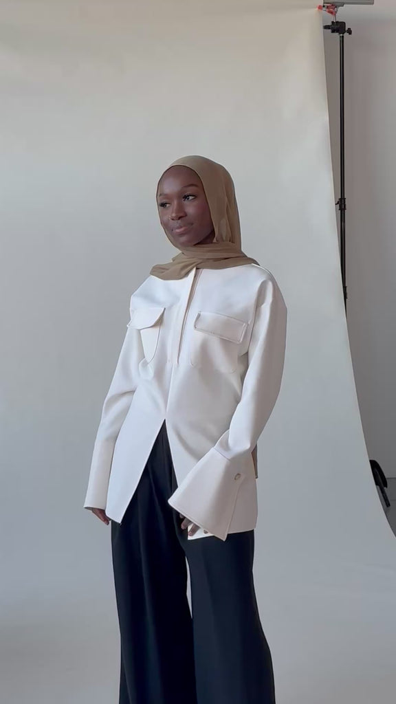The Utility Slit Tunic is about to become your next effortless, versatile and stylish wardrobe piece on rotation. The tunic combine utilitarian design in the pockets and chic elements such as the custom SE gold hardware on the structure cuffs, making this a very versatile piece to style up or down. Whether it’s paired with formal pants, skirts, or even jeans, it is truly a year round wardrobe piece that will elevate any look. The bottoms pictured here are not included— only the tunic.