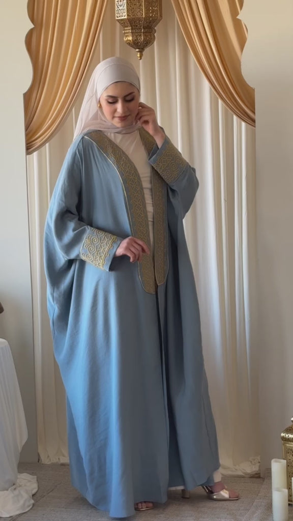 The Aghabani Bisht blends Syrian elements of rich gold threaded embroidery throughout a traditional Bisht silhouette, for a refined and elegant look.