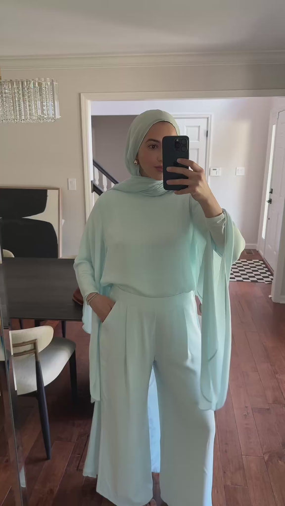Sky Blue Chiffon Cape Tunic Set (3 pcs)- Final Sale
