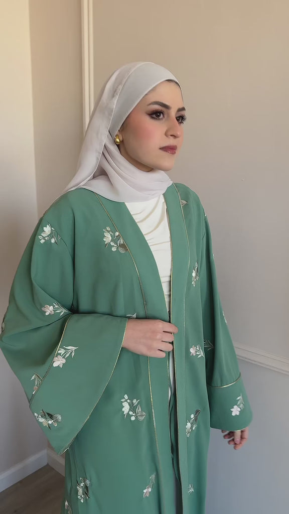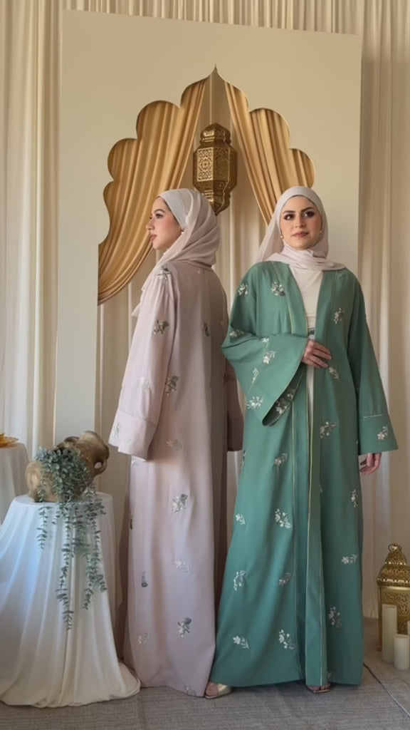 The Yasmin Embroidered abaya embodies the traditional flower of Syria in a playful and feminine silhouette. Designed with rich embroidery and gold piping along the trim, it’s bound to be a spring staple in your formal wardrobe paired with our Signature Cream SE Trousers.