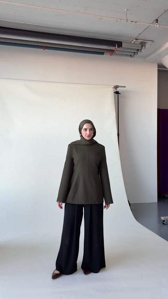 Continuing our love for modest corporate wardrobe, this one of a kind piece embodies the professionalism of a blazer and the effortlessness of a tunic. Lined with a luxurious satin, it’s not only upscale in its composition but extremely comfortable.