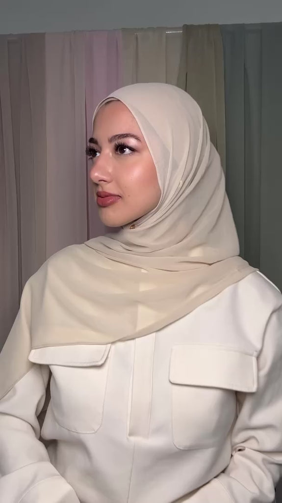 The scarf is semi-sheer, and modeled here without any accessories under. | Measurements: 190 cm x 70 cm | Hand wash or wash on delicate | Made in Turkey | 100% chiffon
