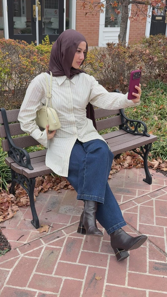 Its oversized cuffs add an edgy, classic touch to the long sleeves, making it both elegant and fashion-forward. Designed with versatility in mind, it can be layered effortlessly — over trousers, skirts, or even dresses — offering multiple styling options for day or night
